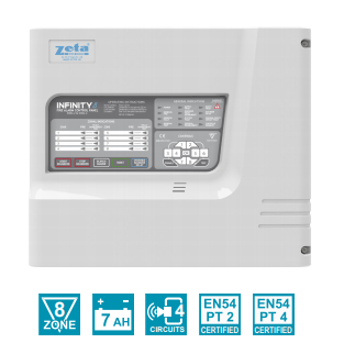 CALL US (+248) 271 12 69The Infinity 8 control panel is housed in the most attractive, modern designed, flame retardent ABS enclosure, utilising a switch mode power supply. It has a fully removable front cover which improves ease of access for cable installations.