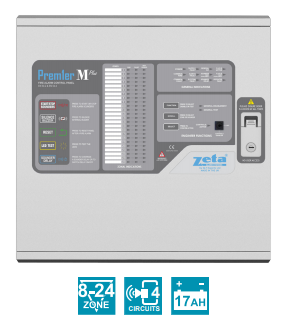 Being of modular construction, the basic M Plus panel has 8 zone capacity, expandable to 16, 20 and 24 zones. The Premier M Plus is suitable for surface mounting or semi-flush fitting (with just the door protruding).